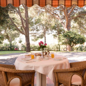 Ogni mattina la colazione è servita a buffet al piano terra del B&B e puoi scegliere se consumarla al chiuso o sotto il portico che si affaccia sul giardino.